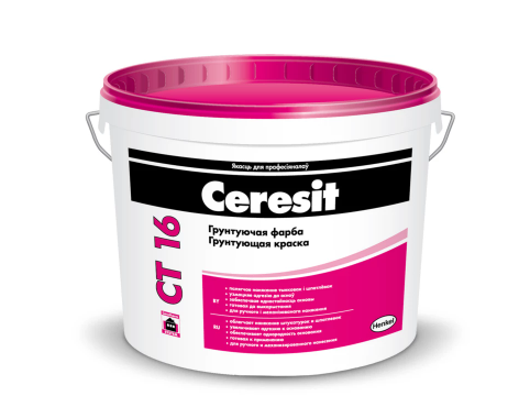 Грунтующая краска Ceresit CT 16 предназначена для предварительной обработки оснований перед нанесением минеральных, акриловых и силиконовых штукатурок, шпатлевок и красок внутри и снаружи зданий. Грунтующая краска может наноситься на цементно-песчаные, цементно-известковые, гипсовые штукатурки, гипсокартон, кирпич, бетонные плиты, армированный стеклосеткой защитный слой в системах утепления. Ceresit CT 16 значительно уменьшает водопоглощение основания, что предотвращает слишком быстрое высыхание наносимых затем материалов. Содержащийся в Ceresit CT 16 мелкий кварцевый наполнитель придает шероховатость гладким поверхностям, что облегчает нанесение штукатурок и шпатлевок и увеличивает прочность сцепления слоев.