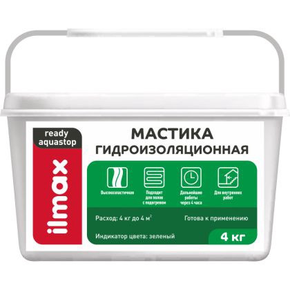 Мастика гидроизоляционная. Готова к применению. Зеленый цвет. Высокоэластичная, водонепроницаемая. Экологически безопасна. Для внутренних