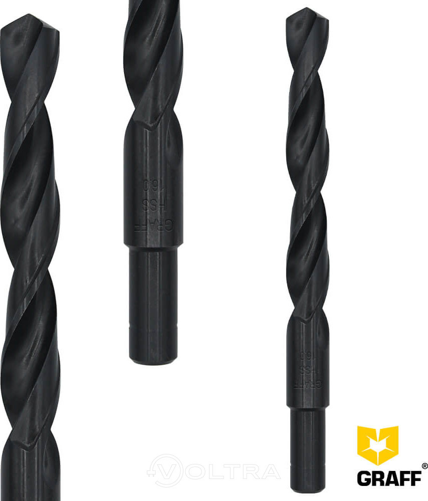 Сверло по металлу 16мм с проточенным хвостовиком GRAFF предназначено для сверления легированных и нелегированных сталей с пределом прочности до 800Н/мм, металлокерамики, чугуна, цветных металлов.