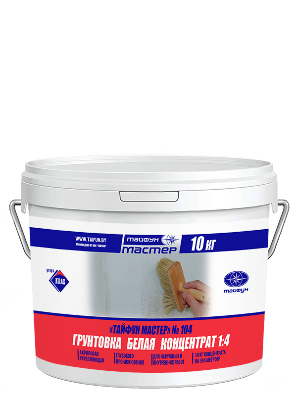 Грунтовка (концентрат 1:4) «Тайфун Мастер» №104 применяется для уменьшения водопоглощения основания пористых и непрочных минеральных оснований. Улучшает адгезию последующего отделочного слоя. Поверхностно упрочняет основание. Предназначена для производства работ внутри и снаружи помещений. Для подготовки поверхностей, для устройства отделочных покрытий (керамическая плитка, керамогранит, штукатурка, шпатлевка, лакокрасочное покрытие, обои и т. д.).