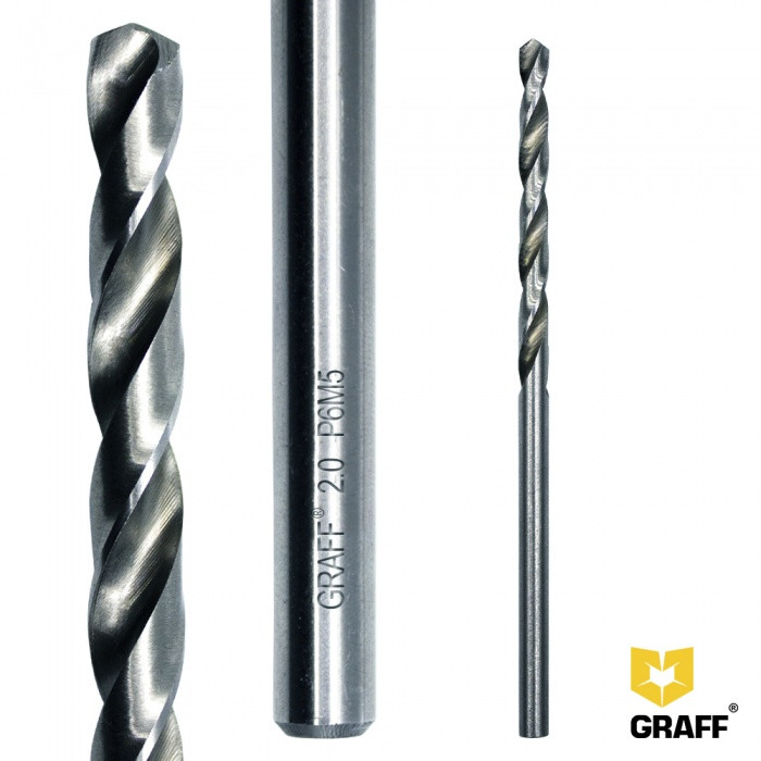 Профессиональное сверло по металлу 2 мм GRAFF из быстрорежущей стали Р6М5.